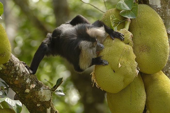 Jackfruit is one of the fav foods of these macaques. They bite off the hard shell and pull the insides out.
